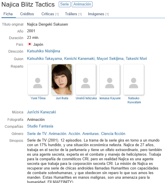 País: Japón Año: 2001 Número de Episodios: 12 de 12 Audio: Japonés Subtitulo: Español Formato: Mkv Calidad: 480 Tamaño por Episodio: 70 Mb aprox. Tamaño Completo: 965 Mb.