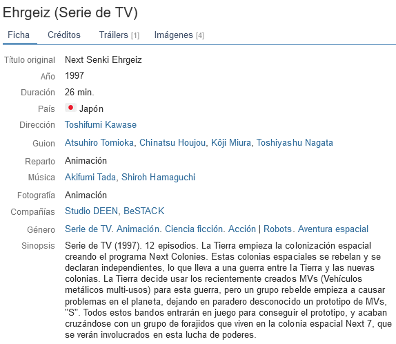 País: Japón Año: 1997 Número de Episodios: 12 de 12 Audio: Japonés Subtitulo: Inglés / Español (aparte) Formato: Mkv Calidad: 640×480 Tamaño por Episodio: 150-250 Mb aprox. Tamaño Completo: 3.4 Gb. Genero: Ciencia Ficción – Robots – Espacial – Animación