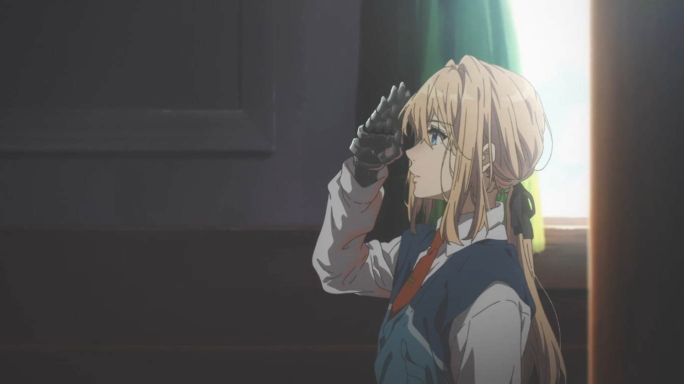 Violet Evergarden es una joven huérfana a la que de pequeña el ejército de Leiden tomó como arma de guerra, excepto el comandante Gilbert Bougainvillea, que estaba a cargo de ella. Una vez acabada la guerra, tuvo que abandonar el campo de batalla y separarse de este mismo, sin siquiera poder entender ciertas palabras que recibió de su comandante Gilbert Bougainvillea en su último encuentro. Violet queda al cuidado de Claudia Hodgins, compañero y amigo de Gilbert, además de ser recibida por la familia Evergarden por órdenes de Gilbert. Así, Violet comienza a trabajar en la Compañía Postal CH y conmovida por el oficio de Auto Memory Doll («Muñeca de recuerdos automáticos», en español), que llevan los pensamientos de la gente y los convierten en palabras por medio de cartas, nuestra protagonista decide convertirse en una para obtener respuestas sobre las últimas palabras de Gilbert.